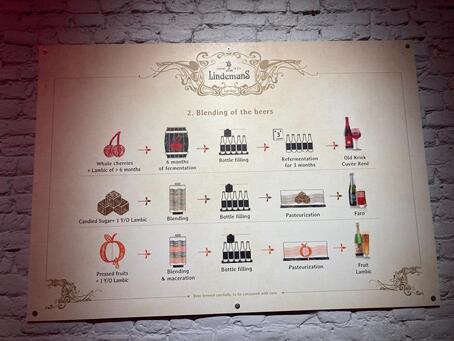 Die folgende Darstellung aus dem Sudhaus der Brauerei Lindemans fasst den Brauprozess als auch den Blending Prozess von verschiedene Lambic- und Geuze- Spezialitäten anschaulich zusammen: