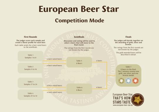 The following picture illustrates the competition mode of the European Beer Star with an examplary category with 32 entries.